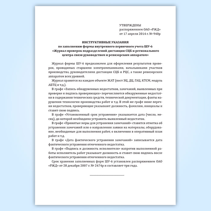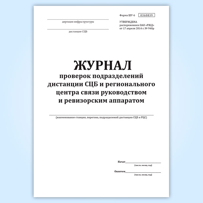 Журнал проверок подразделений дистанции СЦБ и регионального центра связи руководством и ревизорским аппаратом (форма ШУ-6) в Черкесске купить
