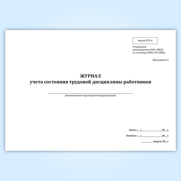Журнал учета состояния трудовой дисциплины работников (форма ТТУ-8) в Черкесске купить