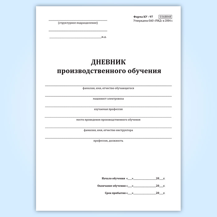 Дневник производственного обучения (форма КУ-97) в Черкесске купить