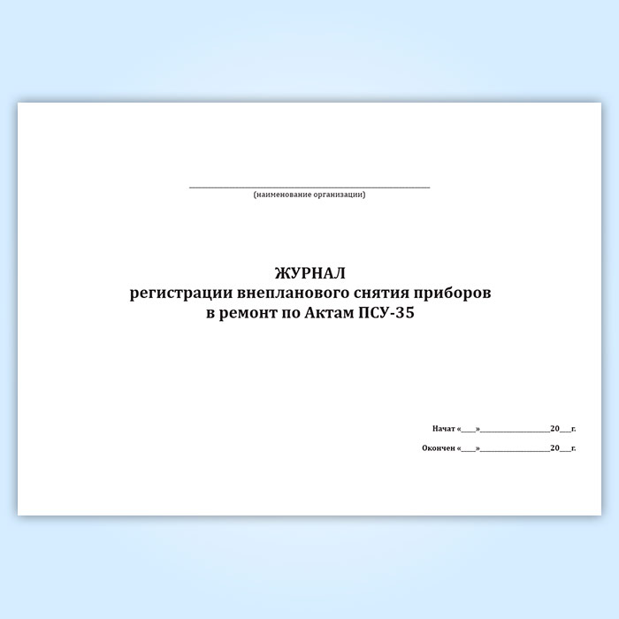 Журнал регистрации внепланового снятия приборов в ремонт по Актам ПСУ-35 в Черкесске купить