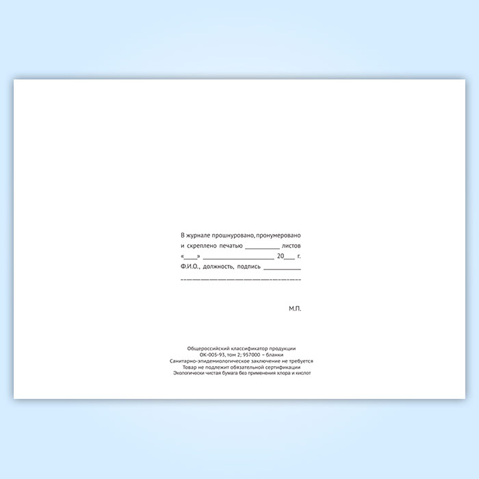 Вы получаете печатную продукцию прошнурованной и c местом для вашей печати в соответствии с действующими нормативными документами: