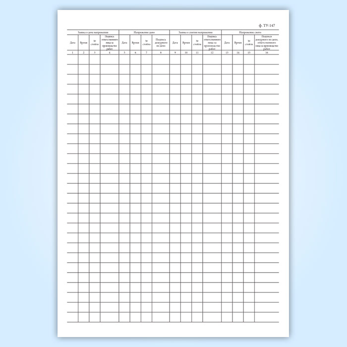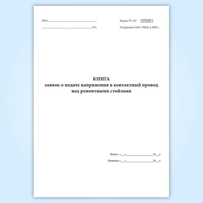 Книга заявок о подаче напряжения в контактный провод над ремонтными стойлами (форма ТУ-147) в Черкесске купить