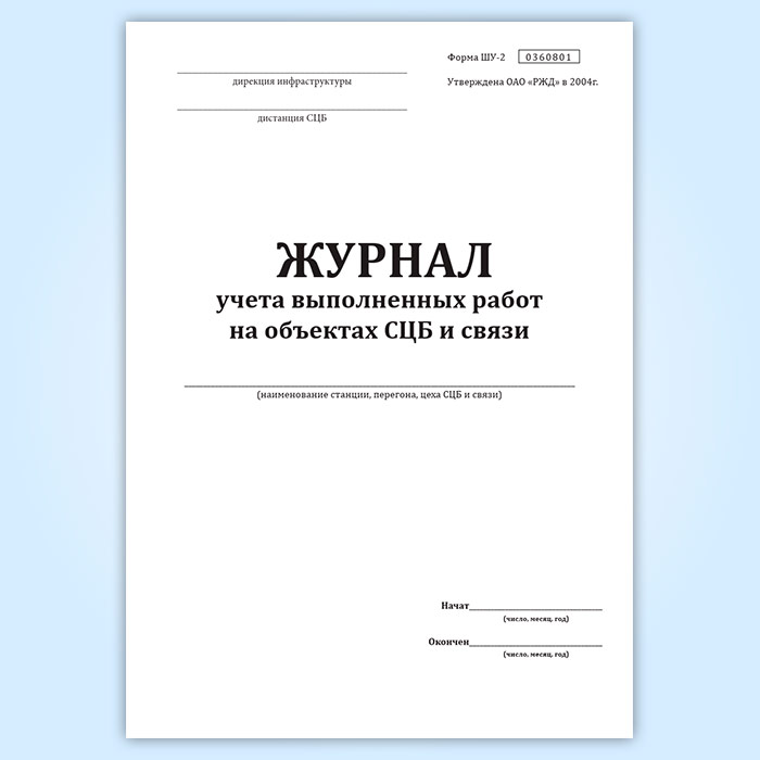 Журнал учета выполненных работ на объектах СЦБ и связи (форма Шу-2) в Черкесске купить