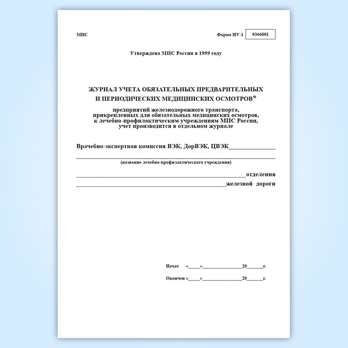 Журнал учета обязательных предварительных и периодических медицинских осмотров (форма НУ-1) в Черкесске купить