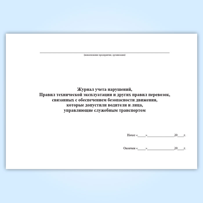 Журнал учета нарушений, правил технической эксплуатации и других правил перевозок, связанных с обеспечением безопасности движения, которые допустили водители и лица, управляющие служебным транспортом в Черкесске купить