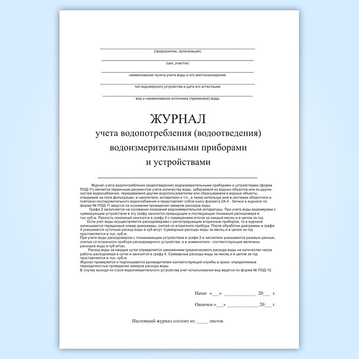 Журнал учета водопотребления (водоотведения) водоизмерительными приборами и устройствами (форма ПОД-11) в Черкесске купить