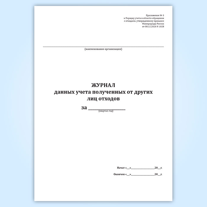 Журнал данных учета полученных от других лиц отходов в Черкесске купить