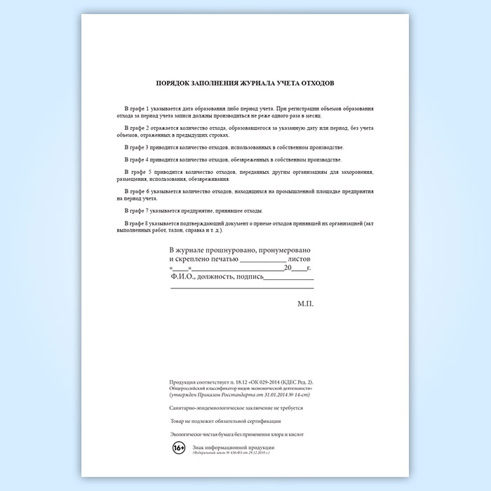 Журнал первичного учета отходов в Черкесске купить