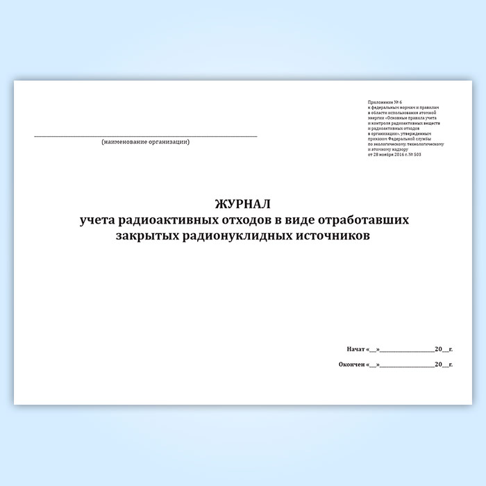 Журнал учета радиоактивных отходов в виде отработавших закрытых радионуклидных источников в Черкесске купить