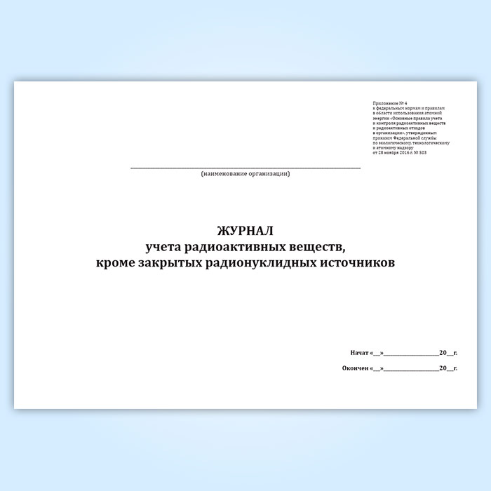 Журнал учета радиоактивных веществ, кроме закрытых радионуклидных источников в Черкесске купить
