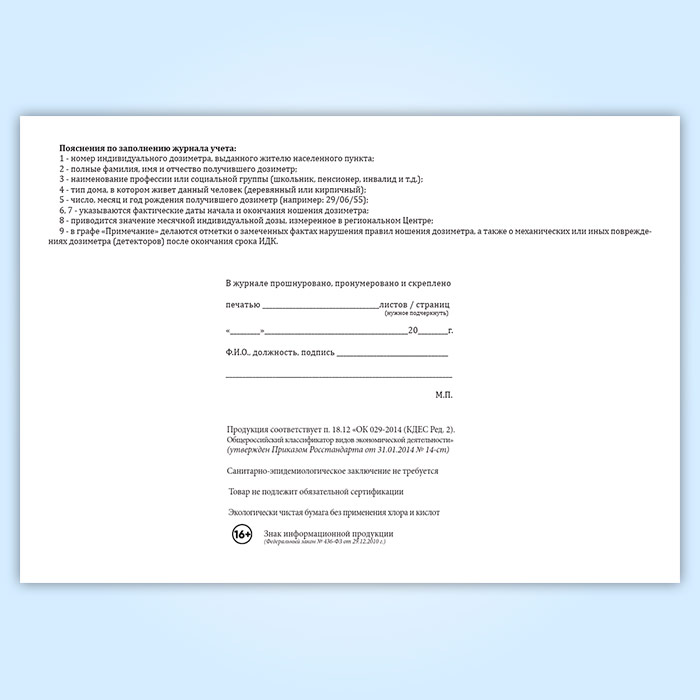 Журнал учета индивидуального дозиметрического контроля внешнего гамма-излучения в Черкесске купить