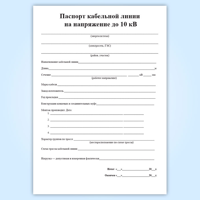 Паспорт кабельной линии на напряжение до 10 кВ в Черкесске купить