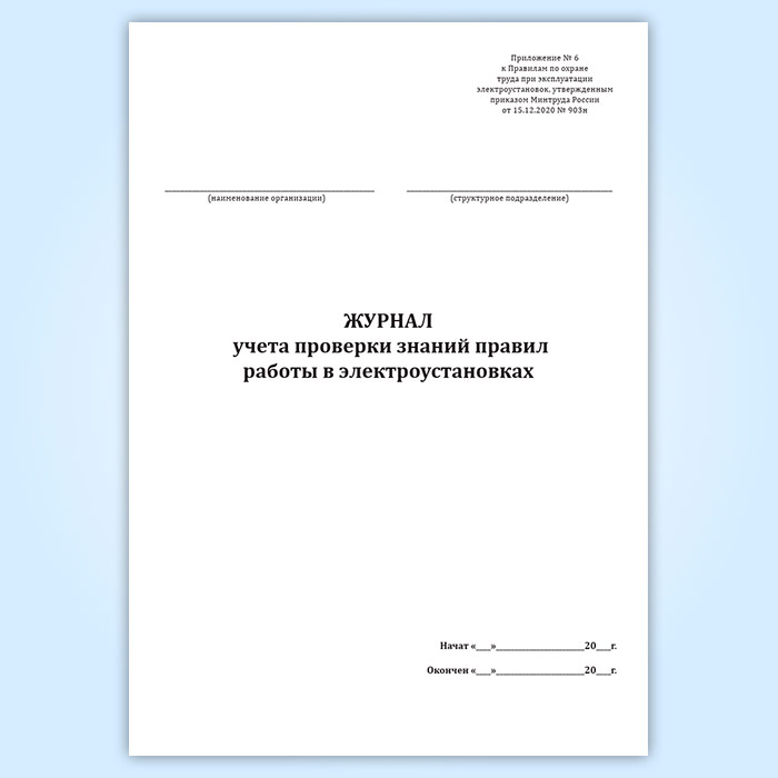 Журнал учета проверки знаний правил работы в электроустановках (Приложение 6) в Черкесске купить