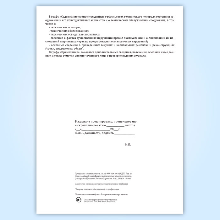 Технический журнал по эксплуатации гидротехнического сооружения в Черкесске купить