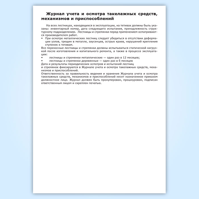 Журнал учета и осмотра такелажных средств, механизмов и приспособлений в Черкесске купить