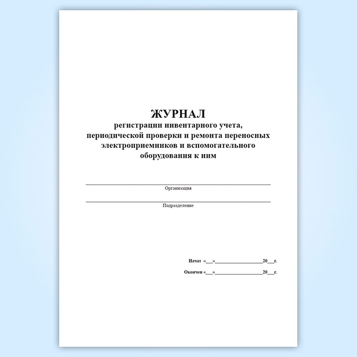 Журнал регистрации инвентарного учета, периодической проверки и ремонта переносных электроприемников и вспомогательного оборудования к ним в Черкесске купить
