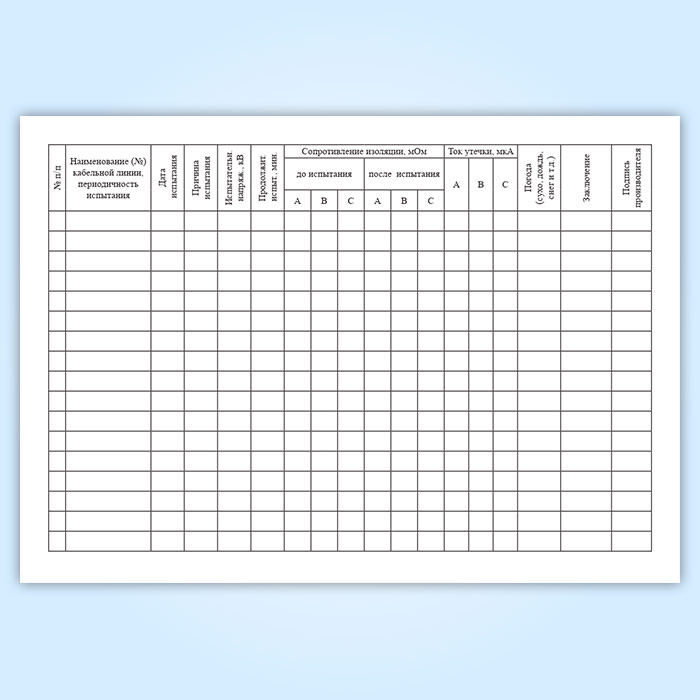 Журнал испытаний кабельных линий с повышенным напряжением (форма № 20-Э) в Черкесске купить