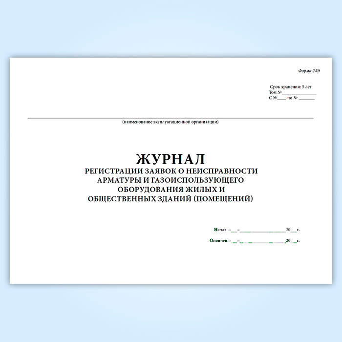Журнал регистрации заявок о неисправности арматуры и газоиспользующего оборудования жилых и общественных зданий (помещений) (форма 24Э) в Черкесске купить