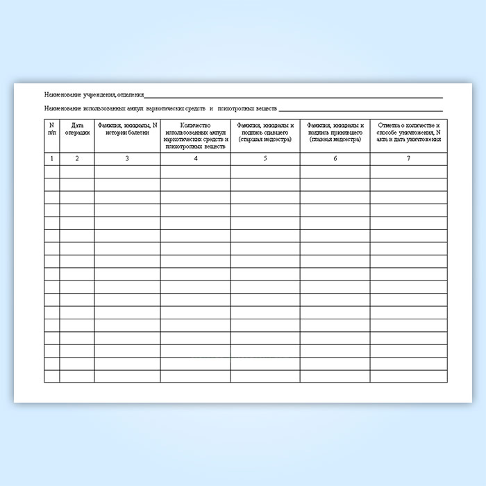 Журнал регистрации операций с использованными ампулами из-под наркотических средств и психотропных веществ у главной медицинской сестры стационарной медицинской организации в Черкесске купить