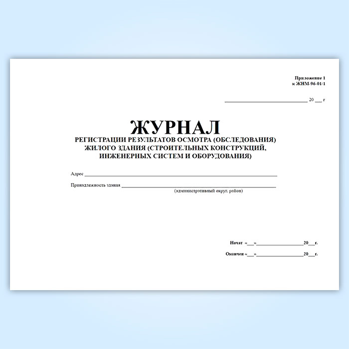 Журнал регистрации результатов осмотра (обследования) жилого здания (строительных конструкций, инженерных систем и оборудования). (Приложение к форме ЖНМ-96-01/1) в Черкесске купить