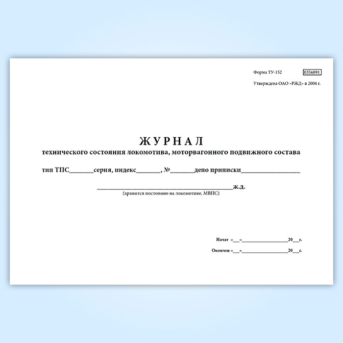 Журнал технического состояния локомотива, моторвагонного подвижного состава (форма № ТУ-152) в Черкесске купить