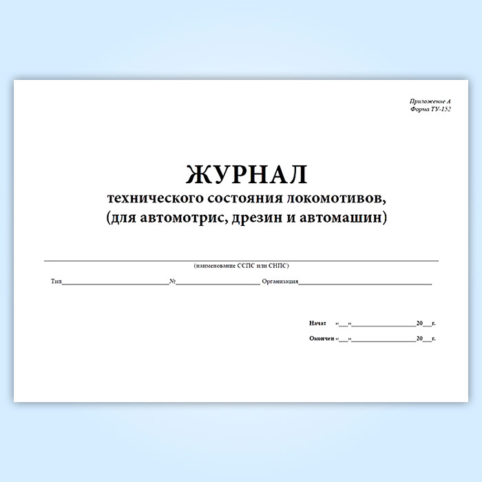 Журнал технического состояния локомотивов (для автомотрис, дрезин и автомашин) (форма ТУ-152) в Черкесске купить