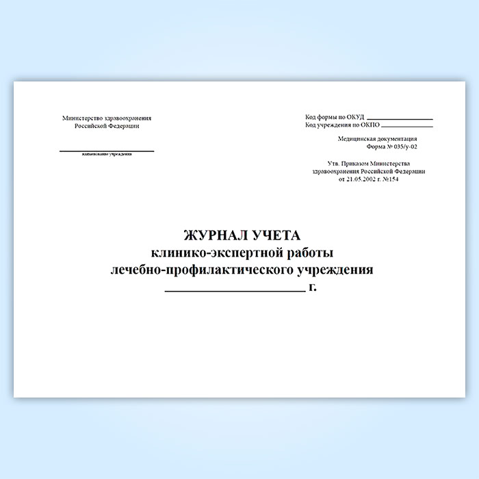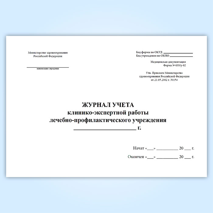 Журнал учета клинико-экспертной работы лечебно-профилактического учреждения (форма № 035/у-02) в Черкесске купить