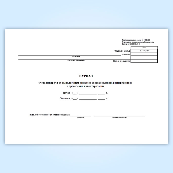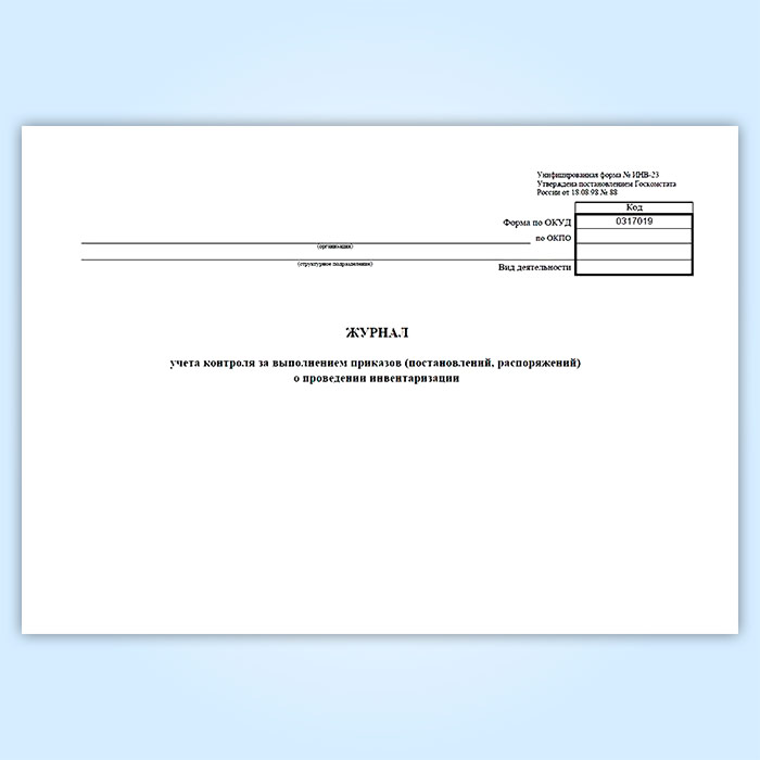 Журнал учета контроля за выполнением приказов (постановлений, распоряжений) о проведении инвентаризации (унифицированная форма ИНВ-23) в Черкесске купить