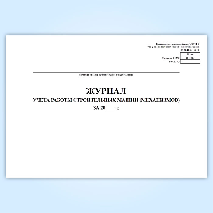 Журнал учета работы строительных машин (механизмов) (форма ЭСМ-6) в Черкесске купить