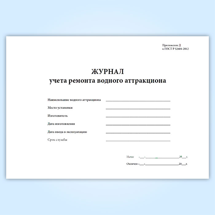 Журнал учета ремонта водного аттракциона в Черкесске купить