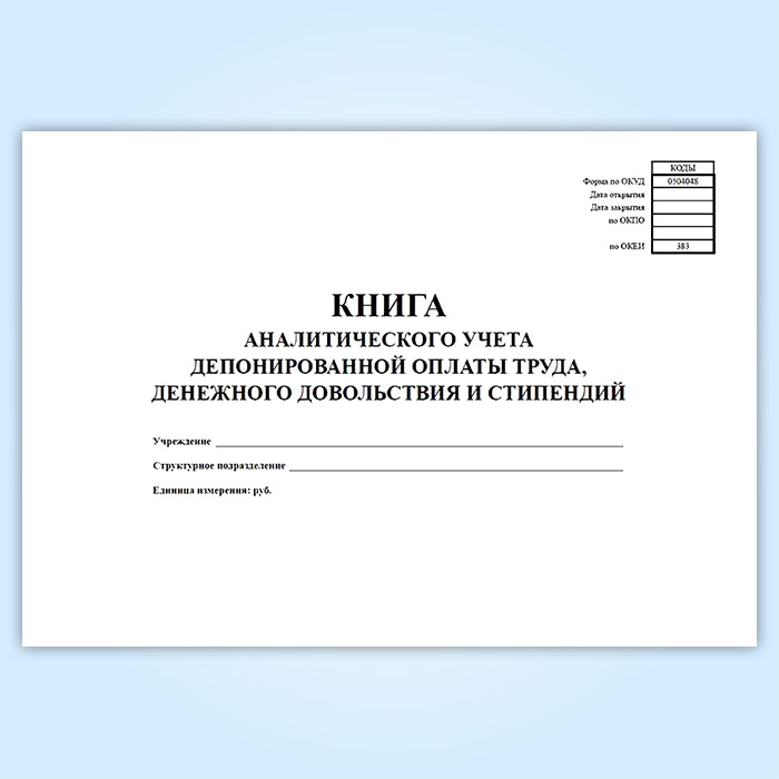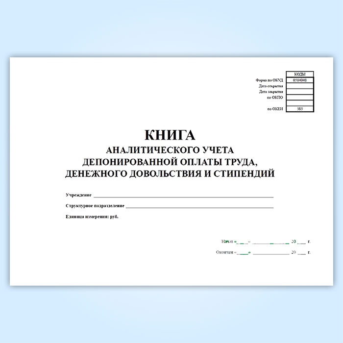 Книга аналитического учета депонированной заработной платы, денежного довольствия и стипендий (код формы 0504048) в Черкесске купить