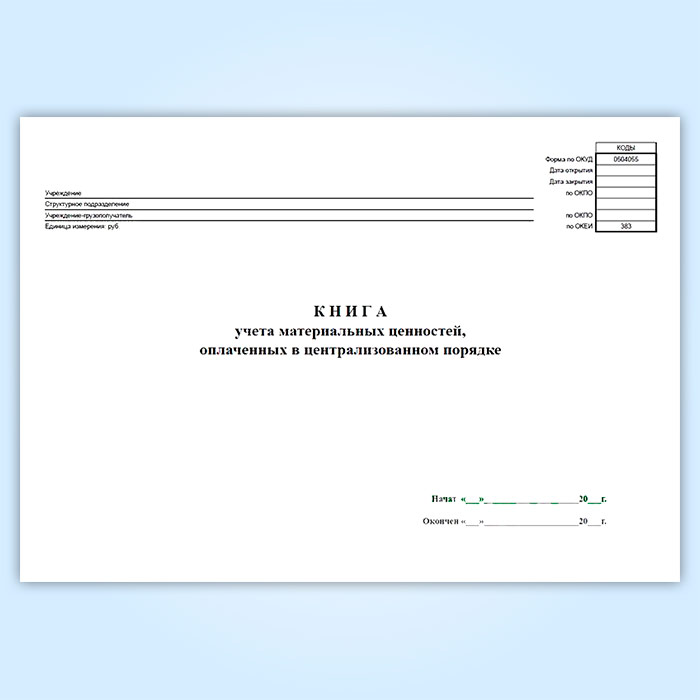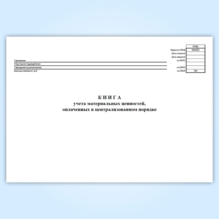 Книга учета материальных ценностей, оплаченных в централизованном порядке (код формы 0504055) в Черкесске купить