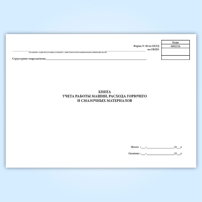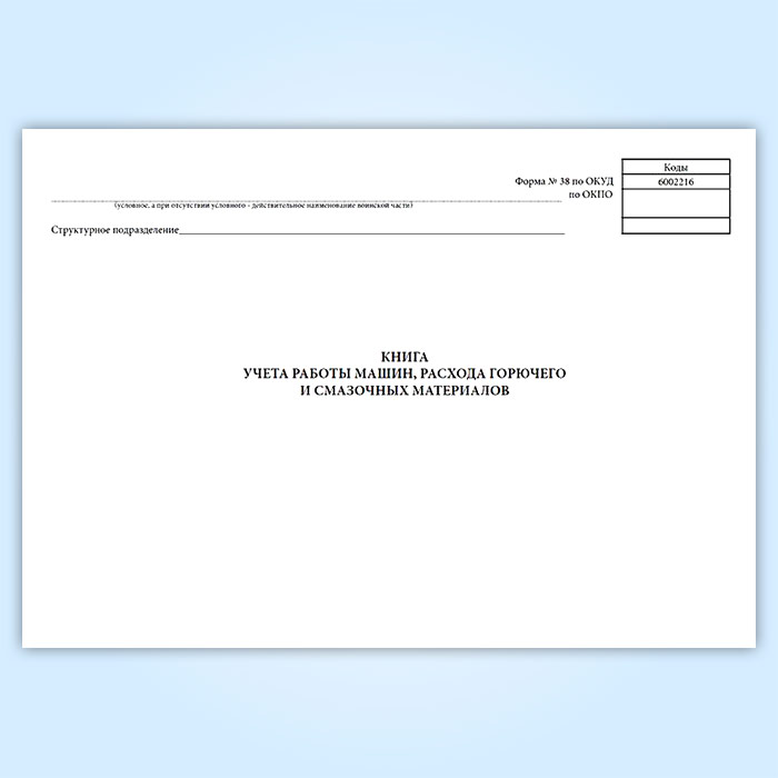 Книга учета работы машин, расхода горючего и смазочных материалов (форма 38, ОКУД 6002216) в Черкесске купить