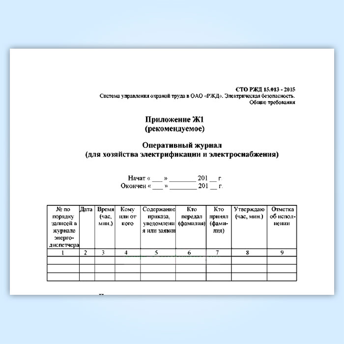 Оперативный журнал (для хозяйства электрификации и электроснабжения) (СТО РЖД 15.013-2015) в Черкесске купить