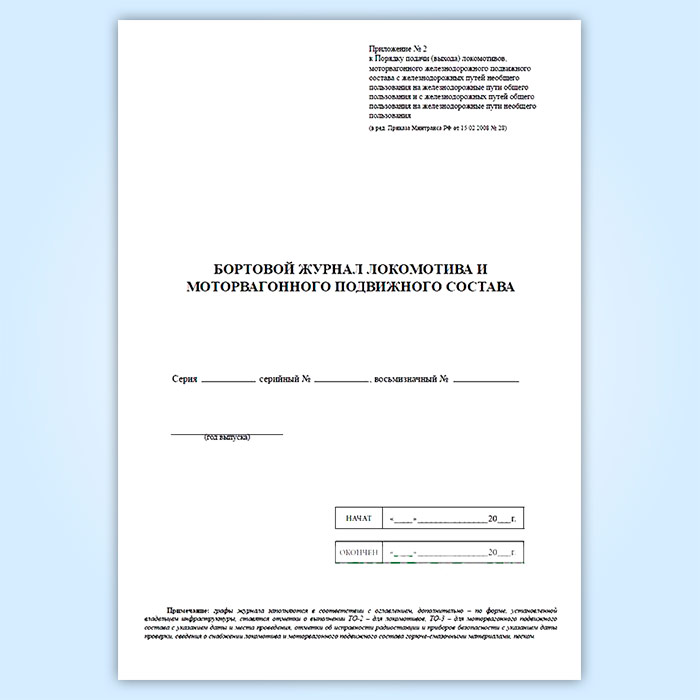 Бортовой журнал локомотива и моторвагонного подвижного состава в Черкесске купить