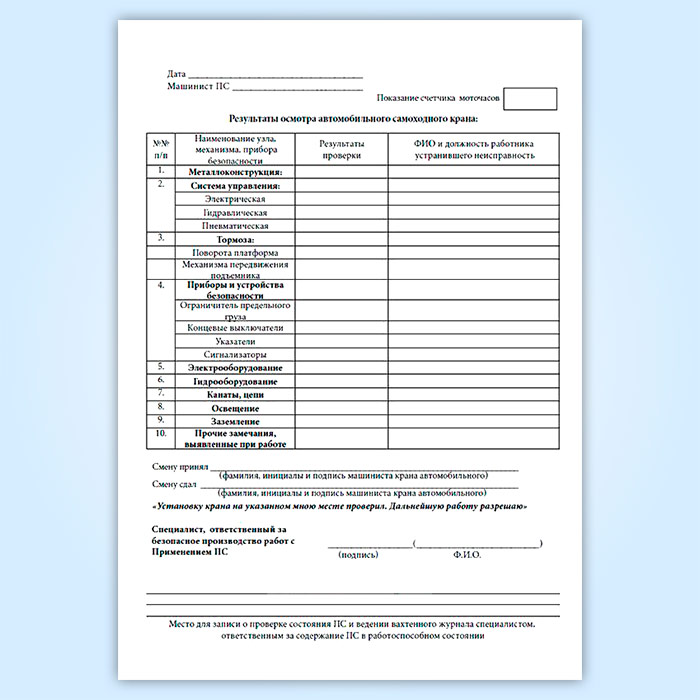 Вахтенный журнал машиниста автомобильного стрелового крана в Черкесске купить