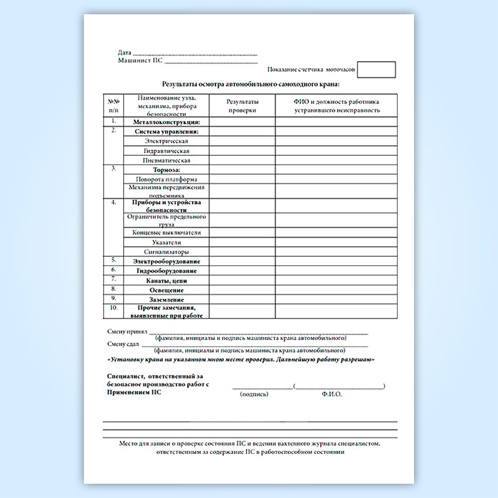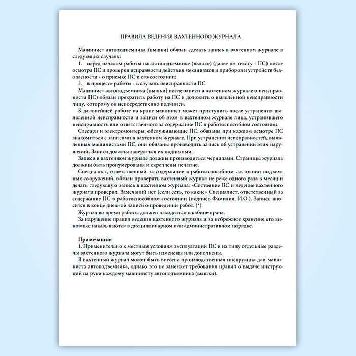 Вахтенный журнал машиниста автоподъемника (вышки) в Черкесске купить