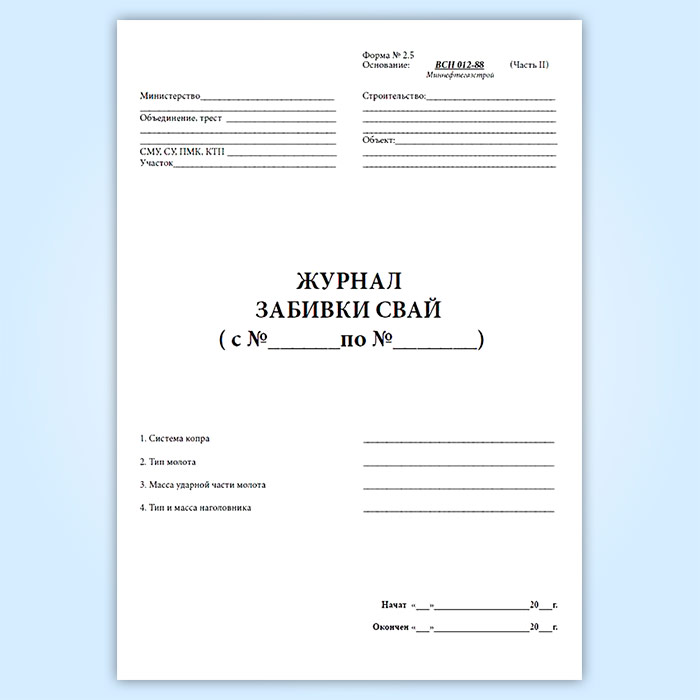 Журнал забивки свай (форма 2.5) в Черкесске купить