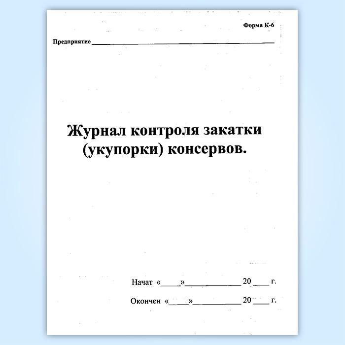 Журнал контроля закатки (укупорки) консервов (форма К-6) в Черкесске купить