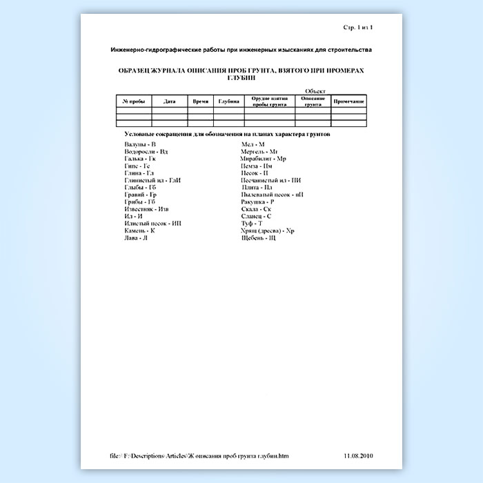 Журнал описания проб грунта, взятого при промерах в Черкесске купить