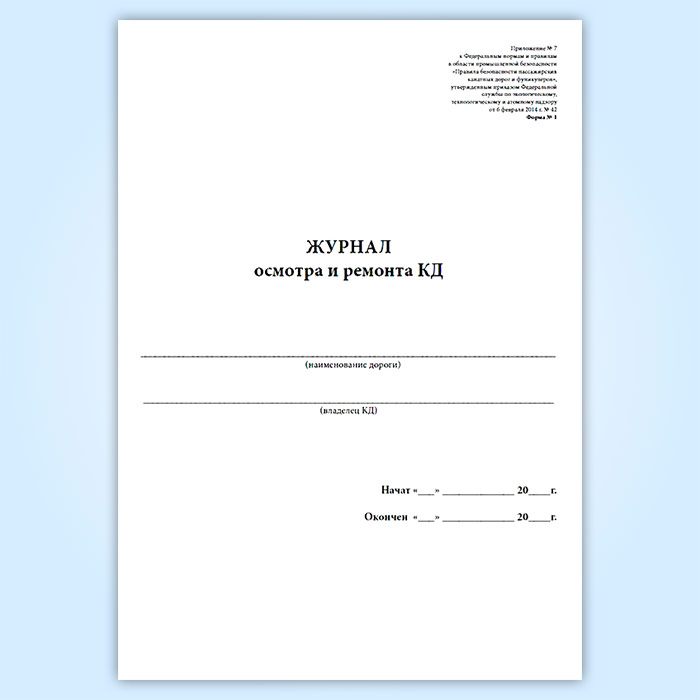 Журнал осмотра и ремонта канатной дороги. Несущий канат (форма № 1) в Черкесске купить