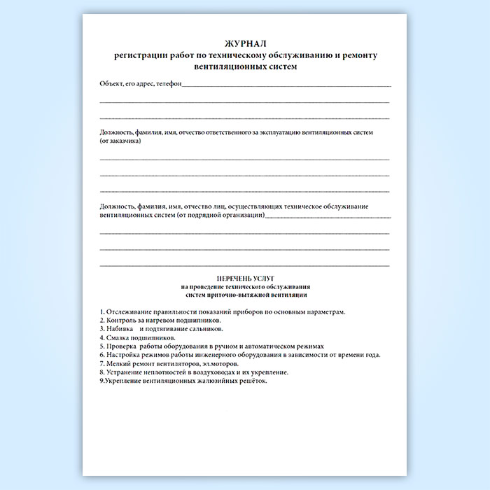 Журнал по техническому обслуживанию вентиляционных систем (систем кондиционирования) в Черкесске купить