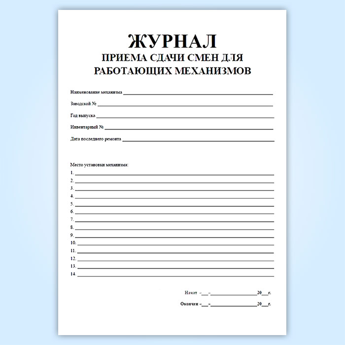 Журнал приема-сдачи смен для работающих на механизмах в Черкесске купить