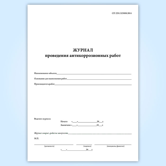 Журнал проведения антикоррозионных работ. СП 229.1325800.2014 в Черкесске купить