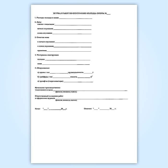 Журнал работ по опусканию колодца опоры в Черкесске купить