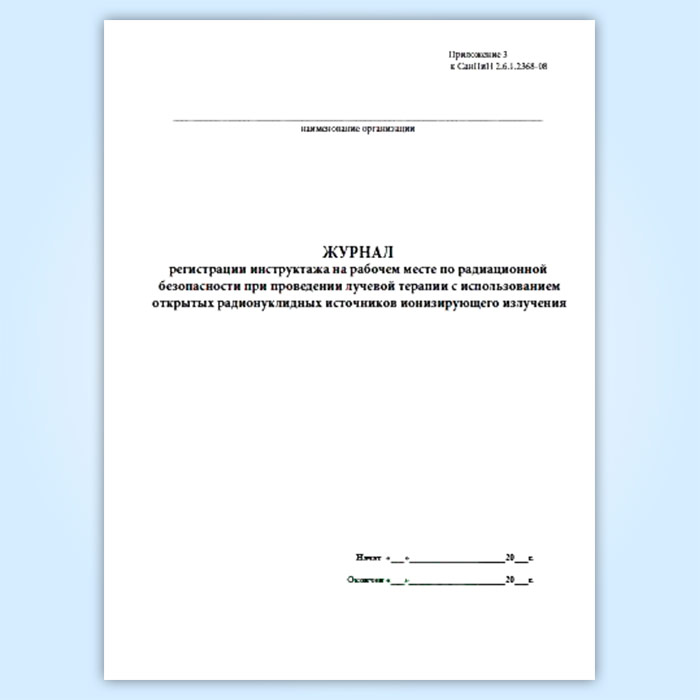 Журнал регистрации инструктажа на рабочем месте по радиационной безопасности при проведении лучевой терапии с использованием открытых радионуклиидных источников ионизирующего излучения в Черкесске купить