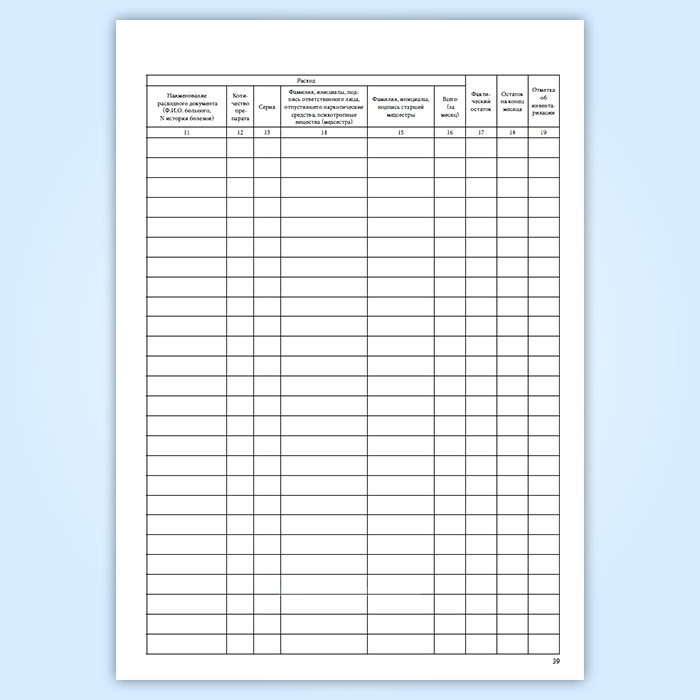Журнал регистрации операций, связанных с оборотом наркотических средств и психотропных веществ дежурной (процедурной) медицинской сестры в стационарном отделении медицинской организации в Черкесске купить
