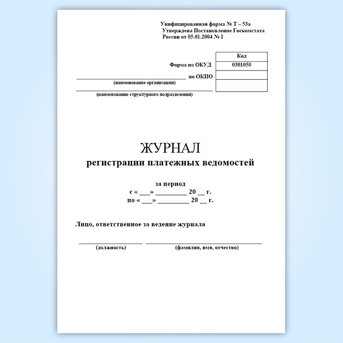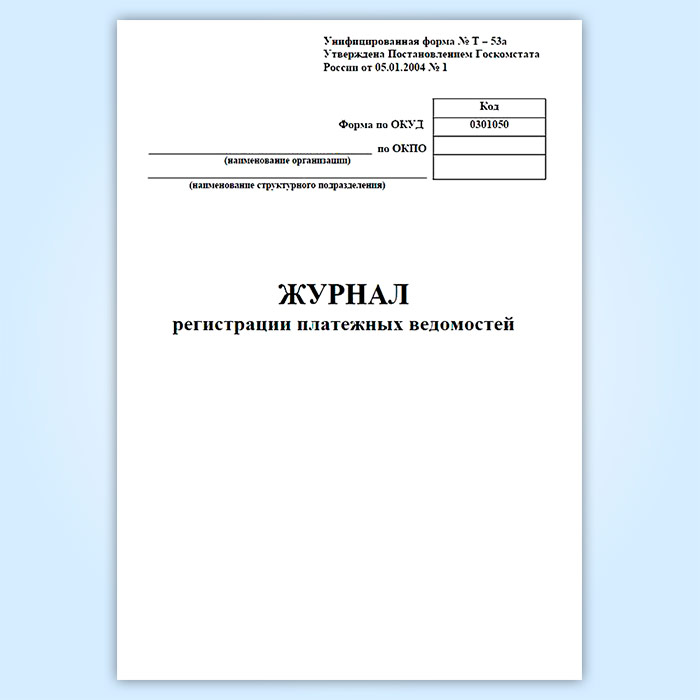 Журнал регистрации платежных ведомостей (унифицированная форма № Т-53а, форма по ОКУД 0301050) в Черкесске купить