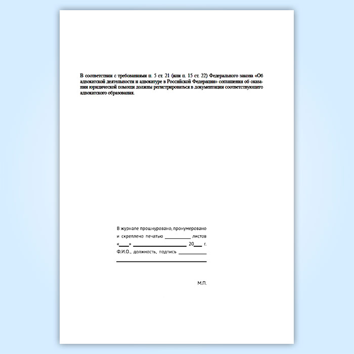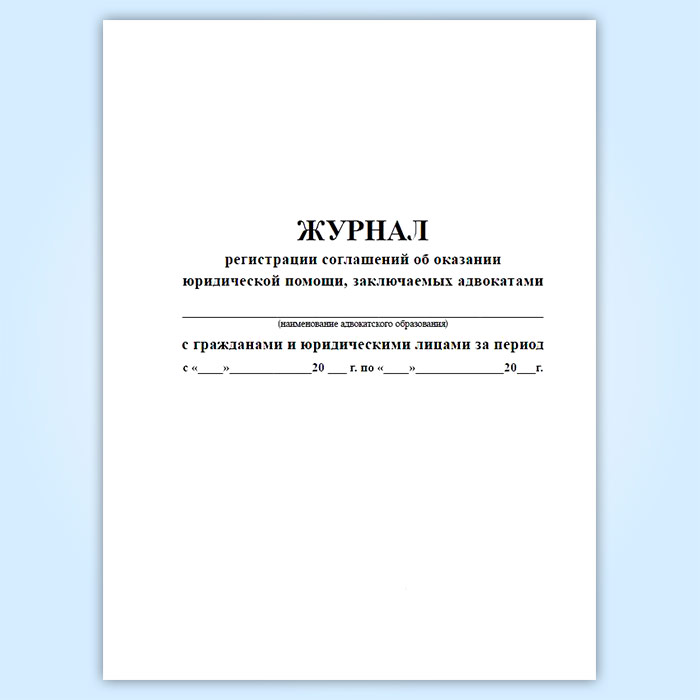 Журнал регистрации соглашений об оказании юридической помощи, заключаемых адвокатами с гражданами и юридическими лицами в Черкесске купить