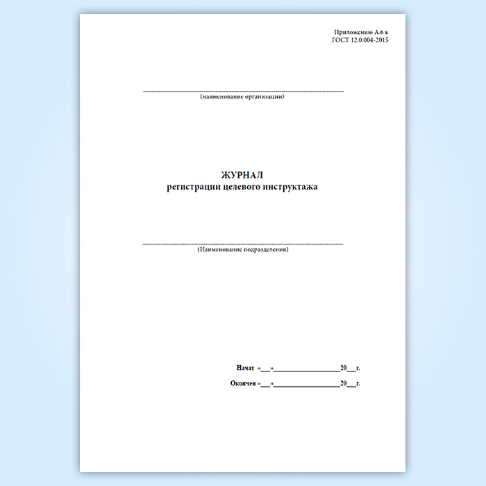 Журнал регистрации целевого инструктажа (ГОСТ 12.0.004-2015) в Черкесске купить